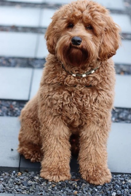 Vince is een kleine medium doedel met een prachtige rode fleece vacht die prachtig wappert als hij rent. Met zijn prachtige donkere kijkers kijkt hij je zo lief aan. Hij heeft een mooi speels karakter met een sterke eigen wil. Hij houdt net als zijn moeder van knuffelen en kan heerlijk alleen spelen. Het is een echte waterrat en dus houdt hij van zwemmen. Hij is zo slim dat hij het speelgoed wat je benoemd uit de mand pakt en weer terugbrengt. Hij is goed getraind, zit nog steeds op training en hij is uitgegroeid tot een mooie kerel.